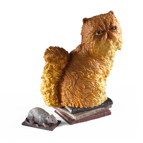 La colección Magical Creatures de Noble Collection nos trae esta exquisita representación de Crookshanks, el gato pelirrojo de Hermione, mitad kneazle, mitad felino común.